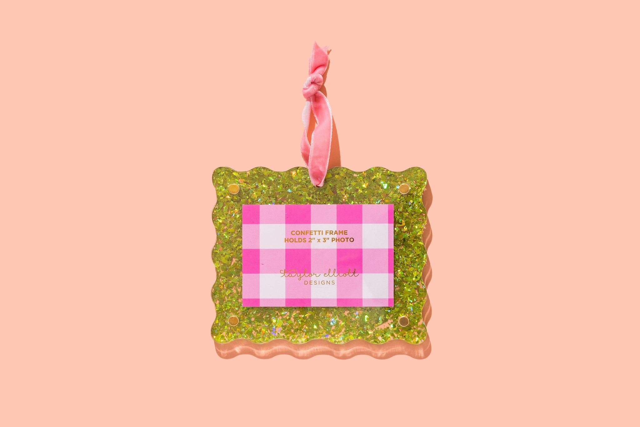 Bring joyful cheer to your holiday decorations with these delightful Confetti Frame Ornaments. Each ornament showcases a cute frame packed with lively confetti, hanging from a plush velvet ribbon. Ideal for adding sparkle to your Christmas tree or sharing as a fun gift, they come in three lively hues to suit any festive style. Add your favorite picture, quote, or artwork for a personal touch!